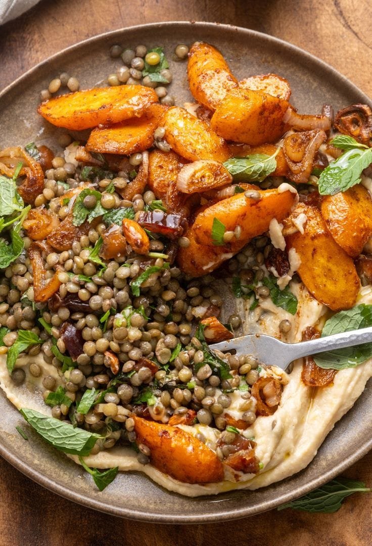 This earthy, nourishing salad brings together tender roasted carrots and protein-rich lentils, all drizzled with a creamy, zesty herbed tahini sauce. The flavors are smoky, herbaceous, and satisfying — ideal as a main or side dish, whether warm or at room temperature. A Mediterranean-inspired dish that’s healthy, plant-based, and loaded with texture.