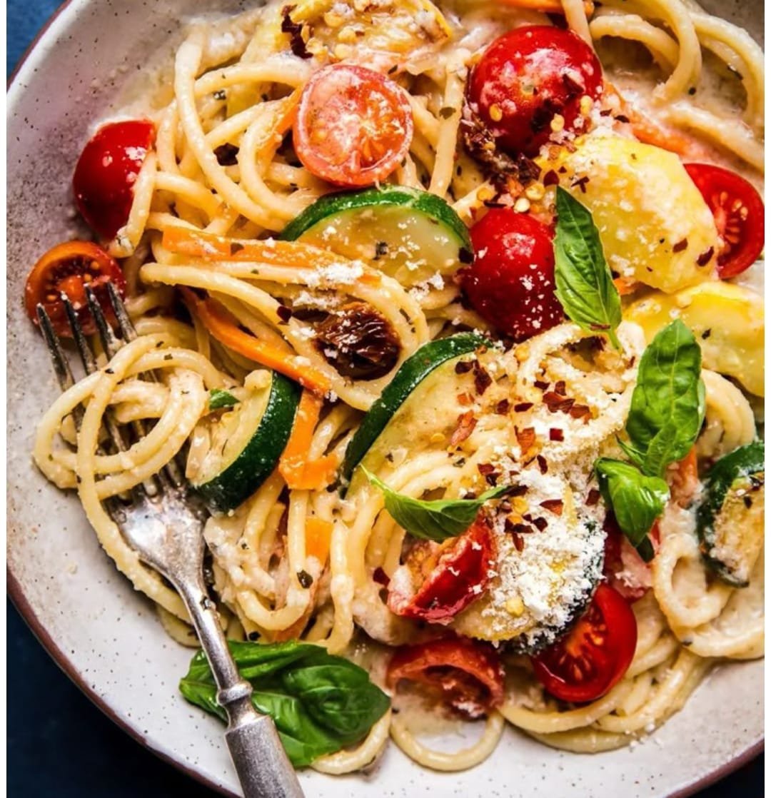 This colorful Mediterranean pasta combines tender zucchini, fresh spinach, and crumbled feta in a lemony olive oil sauce. It’s quick to make, refreshing, and wholesome — perfect for a healthy weeknight meal.