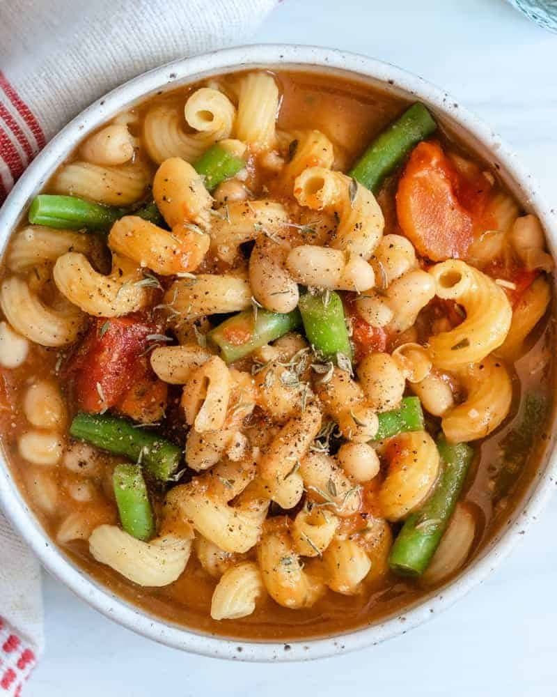 Mediterranean Mixed Pasta, Bean, and Tomato Soup