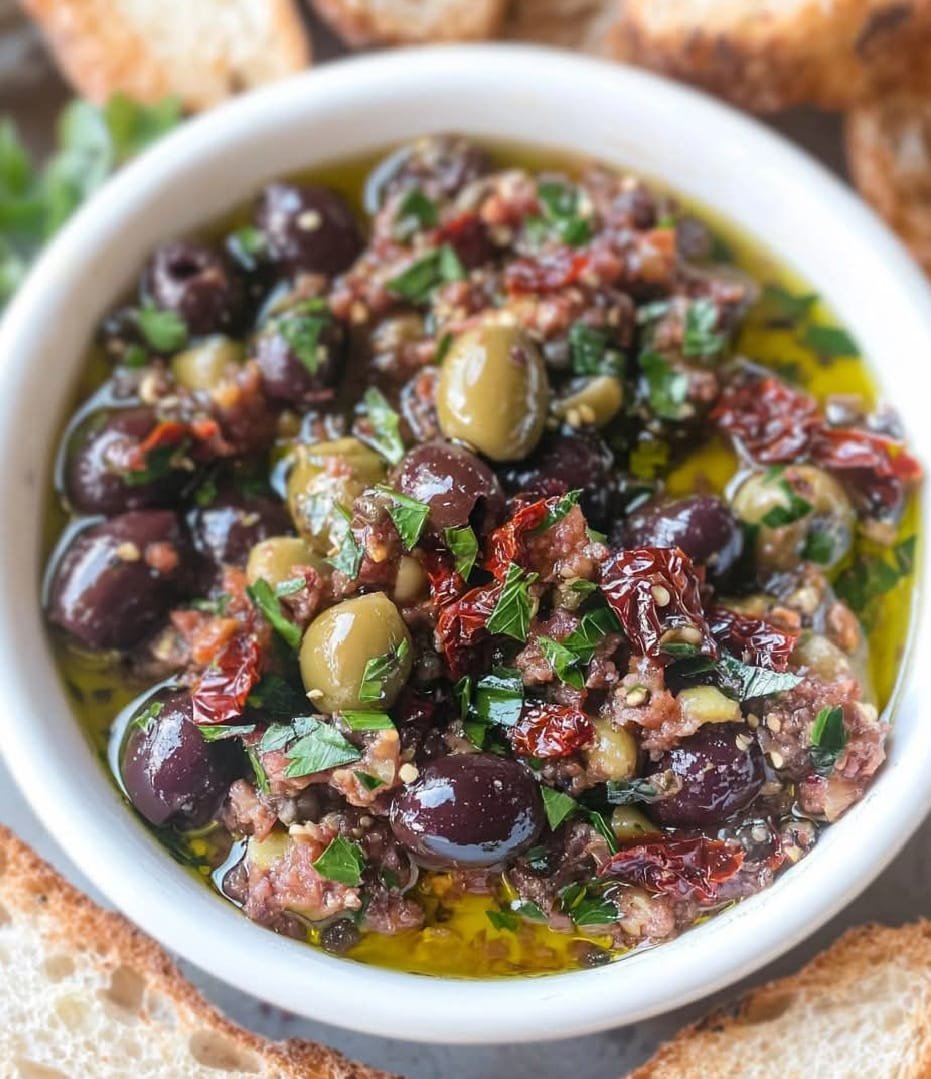 This Mediterranean Olive Tapenade is a bold, savory spread made from a blend of briny olives, capers, garlic, and fresh herbs. Originating from the Provence region of France, this tapenade is perfect as a dip, sandwich spread, or topping for grilled meats and vegetables. It’s packed with heart-healthy fats, antioxidants, and umami-rich flavors, making it a staple in Mediterranean cuisine.