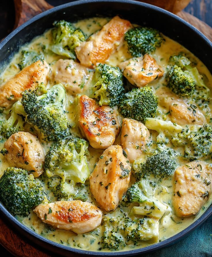 This dish is a one-pan, Mediterranean-inspired meal with tender chicken, fresh broccoli, and a creamy, garlicky sauce made with Greek yogurt and spices. It’s simple, healthy, and full of bold flavors without heavy cream or butter.