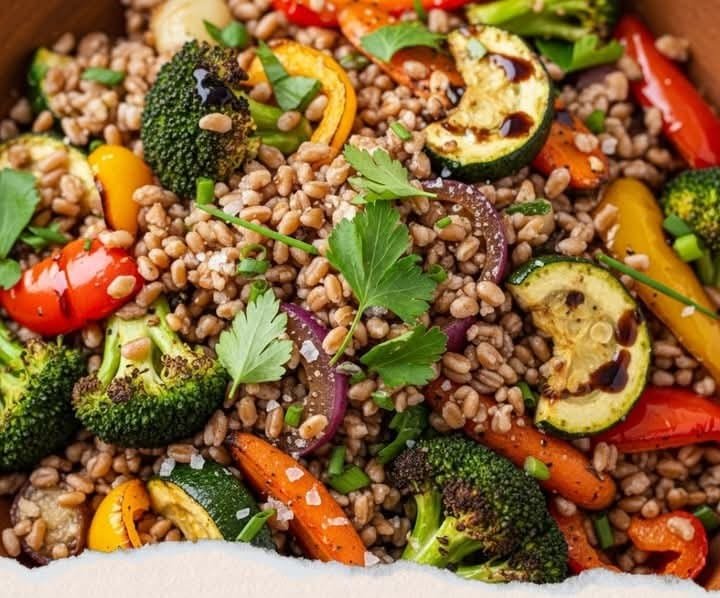 Mediterranean Roasted Vegetable and Farro Salad is a vibrant, wholesome dish that brings together the bold flavors of the Mediterranean with nourishing whole grains and roasted vegetables. It’s versatile enough to serve as a main course, hearty side, or meal-prep favorite, and can easily be customized with different proteins, grains, or herbs. Whether you serve it warm or chilled, this salad is a perfect way to enjoy fresh, seasonal produce with satisfying texture and bright, lemony dressing.