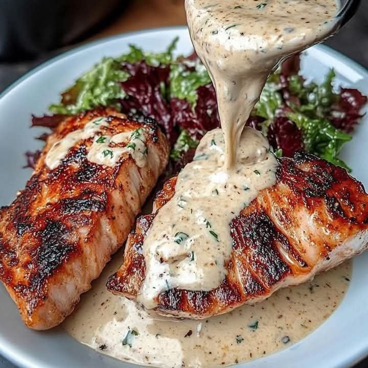 A fresh and satisfying Mediterranean-inspired dish featuring perfectly seared tuna steaks paired with a crisp veggie salad and finished with a rich, creamy garlic sauce. It’s light yet flavorful, ideal for a quick yet elegant meal.