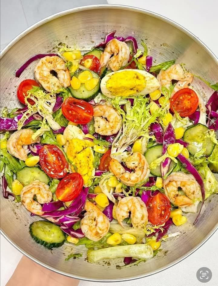 This vibrant Mediterranean salad is a celebration of fresh, healthy ingredients. Featuring grilled or pan-seared shrimp, creamy hard-boiled eggs, crisp romaine, frisée, red cabbage, and juicy vegetables, it’s tossed with a zesty lemon-mustard vinaigrette. Whether you’re looking for a quick lunch, a light dinner, or a beautiful brunch plate, this salad delivers flavor, balance, and nutrition in every bite.