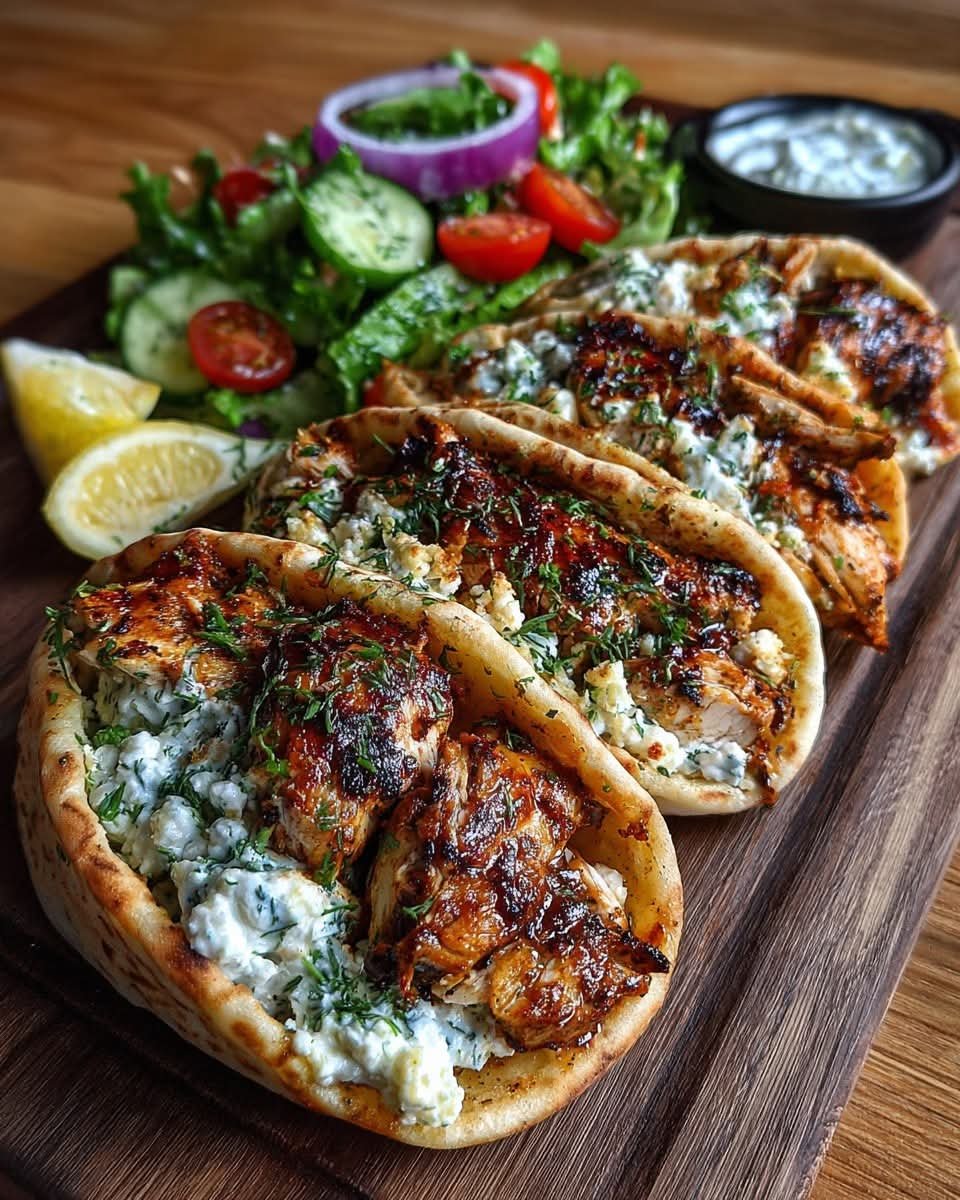 Mediterranean Spiced Chicken Pita with Creamy Dill Feta