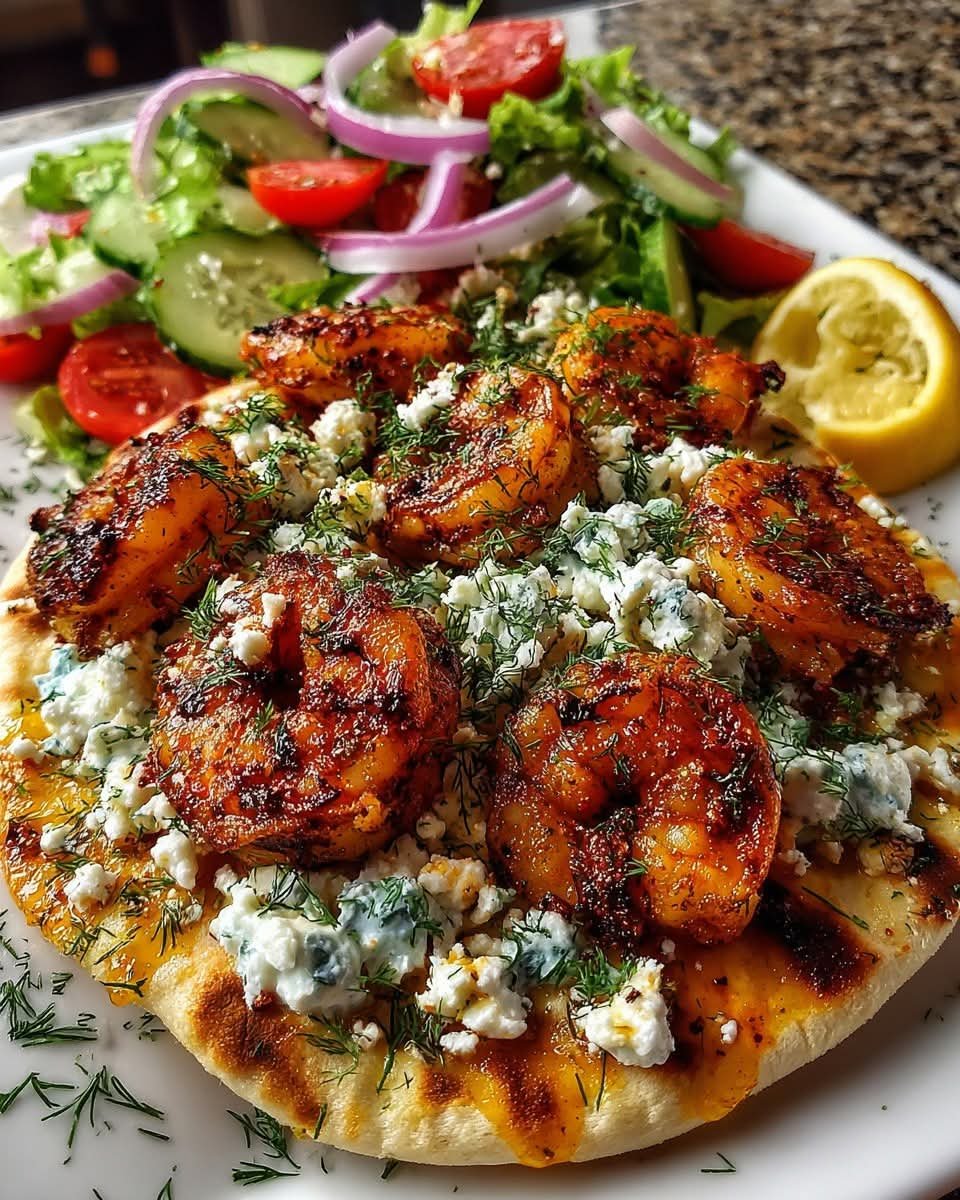Mediterranean Spiced Shrimp Pita with Creamy Dill Feta