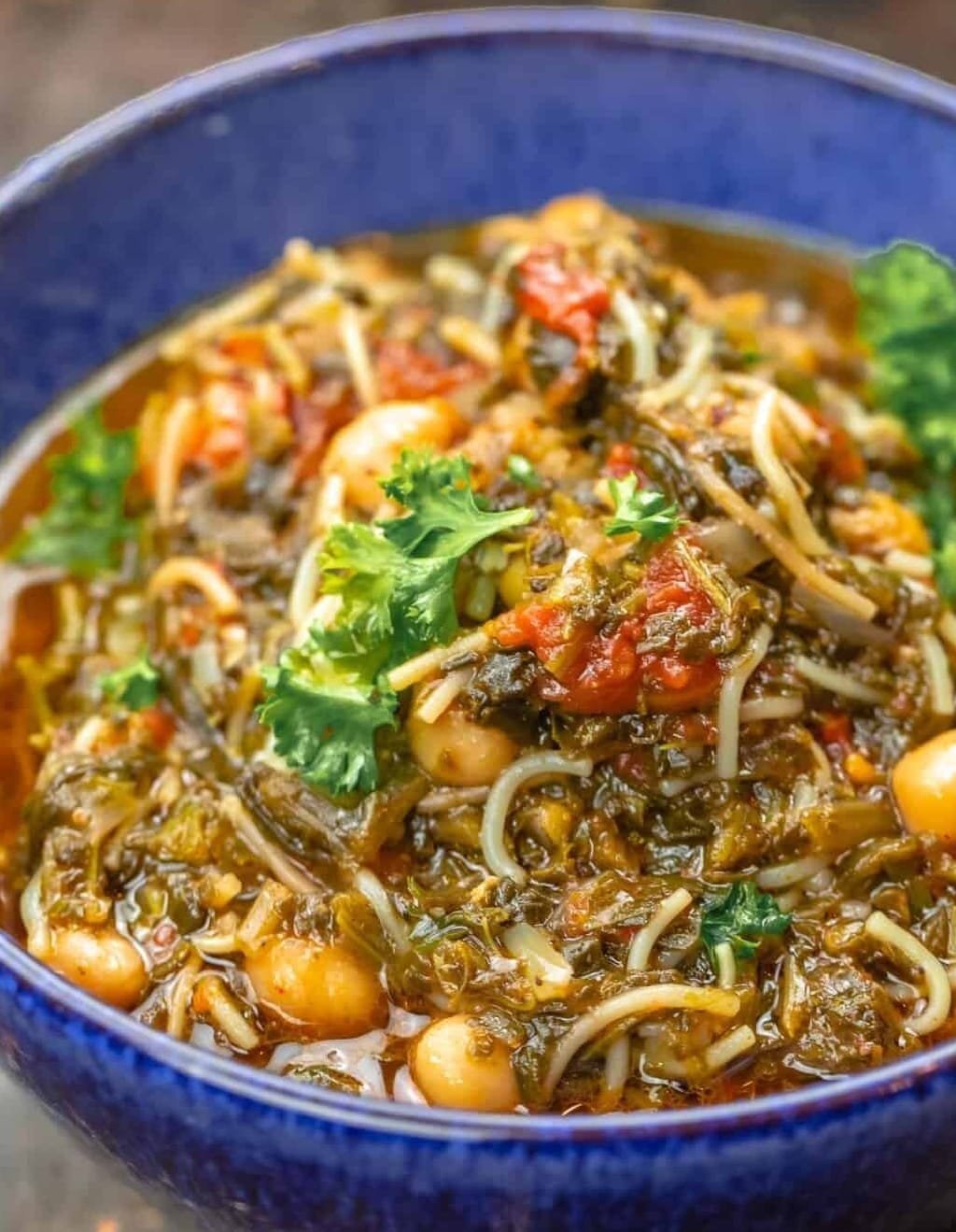 This spinach chickpea stew turns a bag of frozen spinach and some chickpeas into a wholesome one-pot dinner to feed a crowd! There are variations of this spinach stew recipe with tomatoes throughout the Mediterranean and the Middle East.
