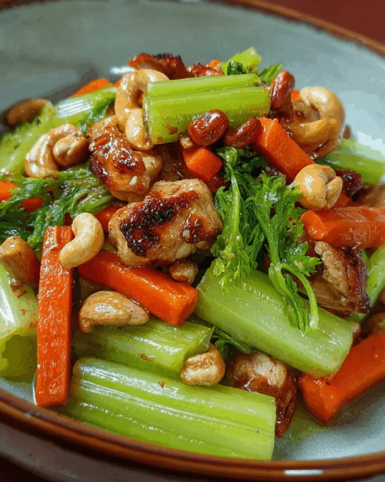 Celery might not always be the star ingredient, but when cooked quickly at high heat, it becomes mildly sweet and pleasantly crunchy. Paired with marinated chicken thighs and buttery cashews, it turns into a surprisingly crave-worthy dish. This recipe is ideal for busy evenings, meal prep lunches, or anytime you want something quick that still feels thoughtfully cooked.