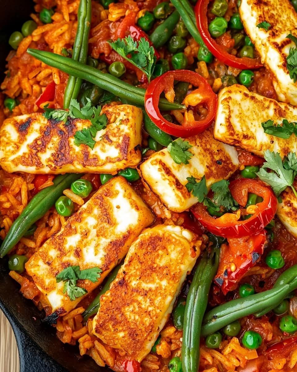 Here’s a full, detailed recipe for a vibrant and satisfying Mediterranean Tomato Rice with Halloumi – a hearty vegetarian dish packed with flavor from herbs, sun-ripened tomatoes, and crispy grilled halloumi cheese.