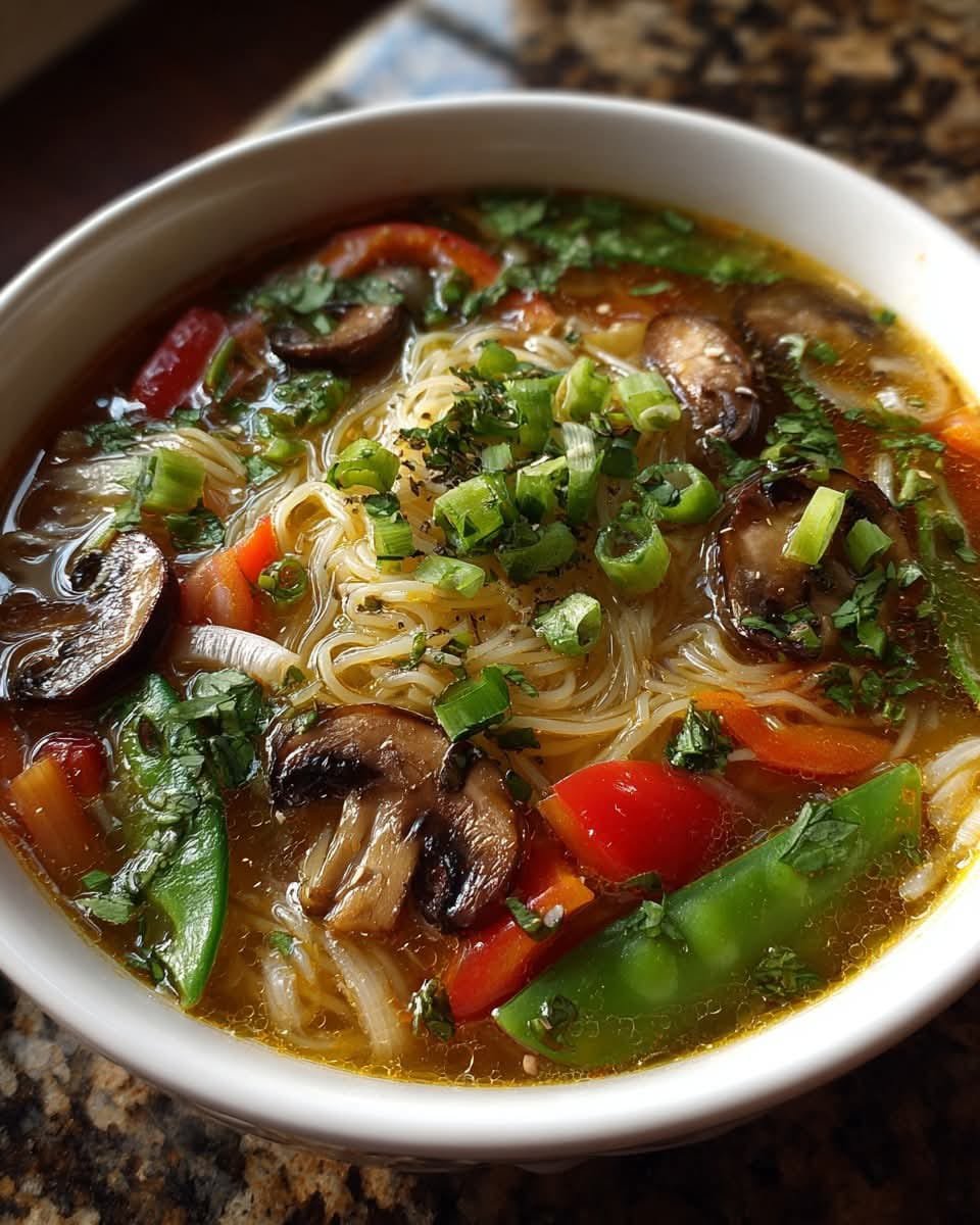 Mediterranean Thai Vegetable Noodle Soup brings together the freshness of Mediterranean produce and the bold, aromatic notes of Thai cuisine in one cozy bowl. It’s nourishing, versatile, and full of texture — soft noodles, crisp veggies, and a zesty, fragrant broth. Perfect for a light dinner or a soothing meal on a chilly day, this soup is a great way to eat clean, feel energized, and enjoy a cross-cultural twist on comfort food.