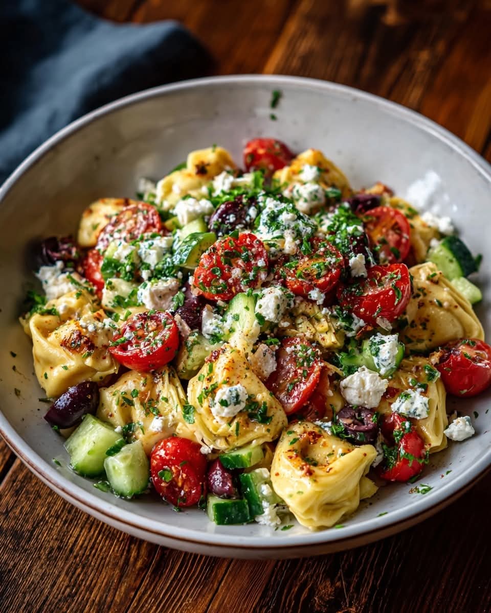 This vibrant Mediterranean-inspired salad combines tender cheese-filled tortellini with briny olives, tangy marinated artichokes, sweet cherry tomatoes, and fresh herbs. Tossed in a zesty olive oil and lemon dressing, it’s hearty enough for lunch yet light and refreshing for a summer dinner. Serve it chilled or at room temperature — perfect for picnics, potlucks, or a no-fuss weekday meal.