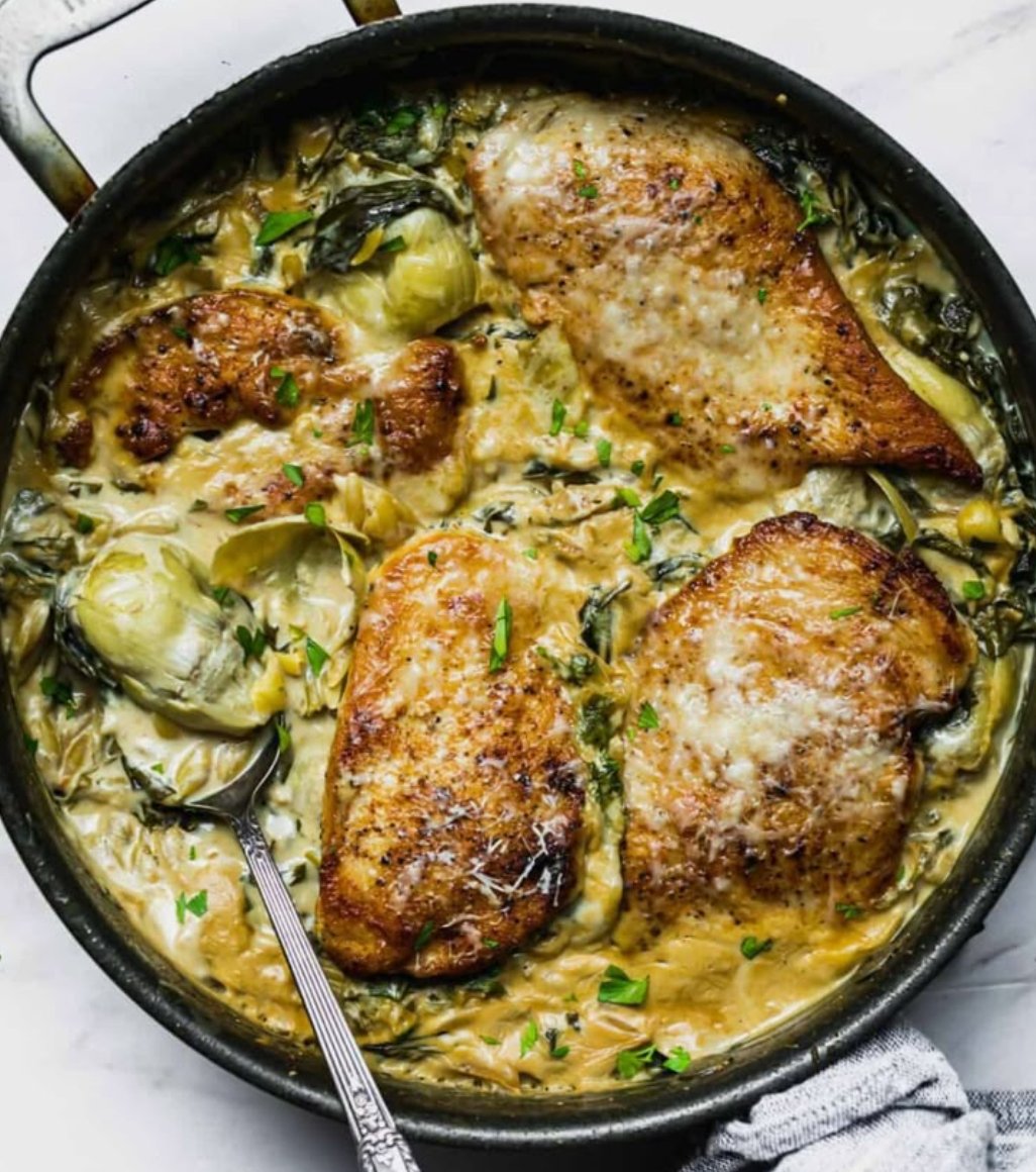 Tender lemon-herb turkey strips cooked with artichokes, spinach, and orzo in olive oil and garlic. This dish tastes like something from a Greek seaside café—fresh, comforting, and not heavy at all.