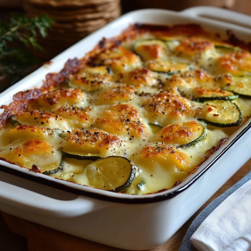 This Mediterranean-style gratin combines tender slices of zucchini and potatoes layered in a luscious garlic-herb béchamel sauce, finished with a golden, bubbling cheese crust. Infused with thyme, oregano, and olive oil, it embodies the rustic, wholesome flavors of the Mediterranean. This dish is both nourishing and elegant — perfect as a vegetarian main or as a side to grilled meats or seafood.