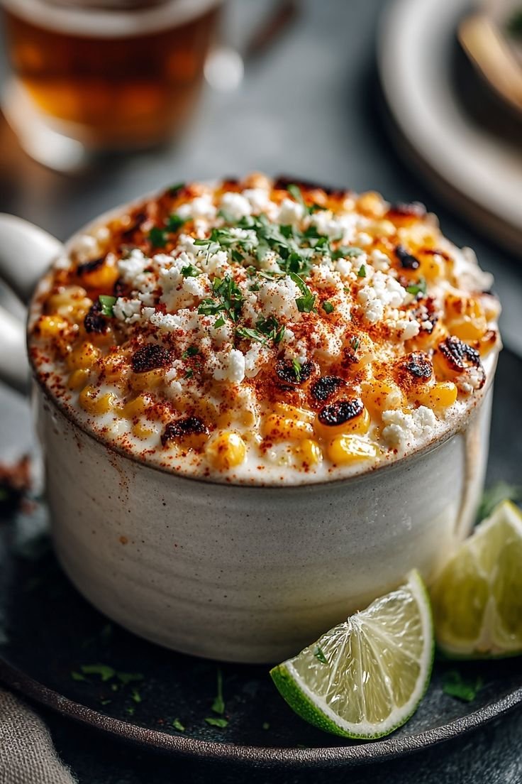 A street-food favorite from Mexico, this dish transforms sweet corn into a creamy, tangy, and spicy snack. Corn is tossed with mayonnaise, lime juice, cheese, and chili powder, served in a cup for easy eating. Perfect for parties, street-food nights, or a flavorful snack.