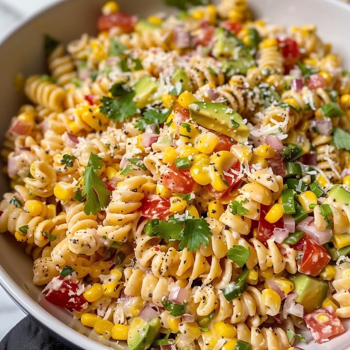 This vibrant, creamy, and slightly spicy Mexican Street Corn Pasta Salad is inspired by elote—the classic Mexican grilled corn. It blends roasted or charred corn, pasta, creamy chili-lime dressing, cotija cheese, and fresh cilantro for an irresistible dish that works as a side or main.