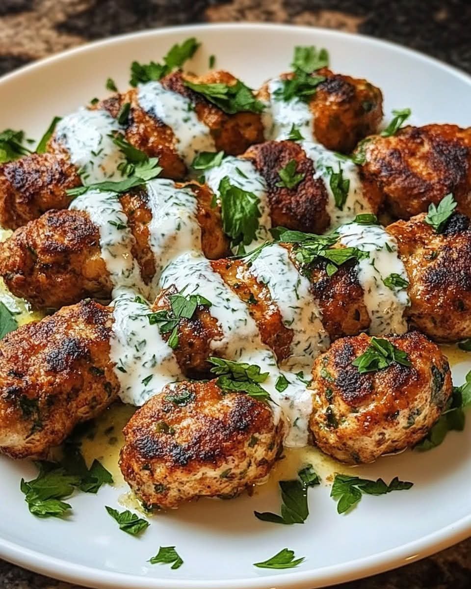 Middle Eastern-Style Spiced Chicken Kofta with Velvety Garlic Yogurt Sauce