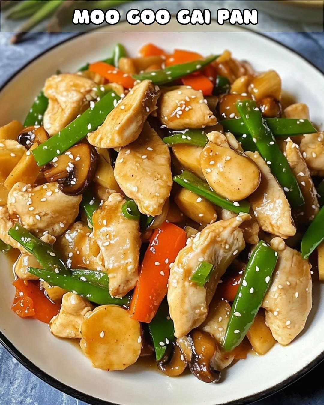 A famous Chinese-American meal called Moo Goo Gai Pan is made with delicate chicken and a variety of crisp veggies stir-fried in a delicious, light sauce. Translating to “mushroom chicken,” this recipe is a filling and healthful dinner that’s simple to make and full of flavorful fresh ingredients. Moo Goo Gai Pan is the ideal option whether you’re seeking a tasty stir-fry that tastes exactly like takeout or a fast midweek supper.