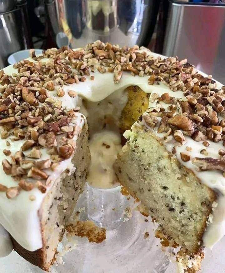 Leave to cool in the pan on a wire rack for 20 minutes. Then put it on a cake plate. Make sure to cover it so the cake doesn’t dry out. A snugly fitting cake pan will be perfect.