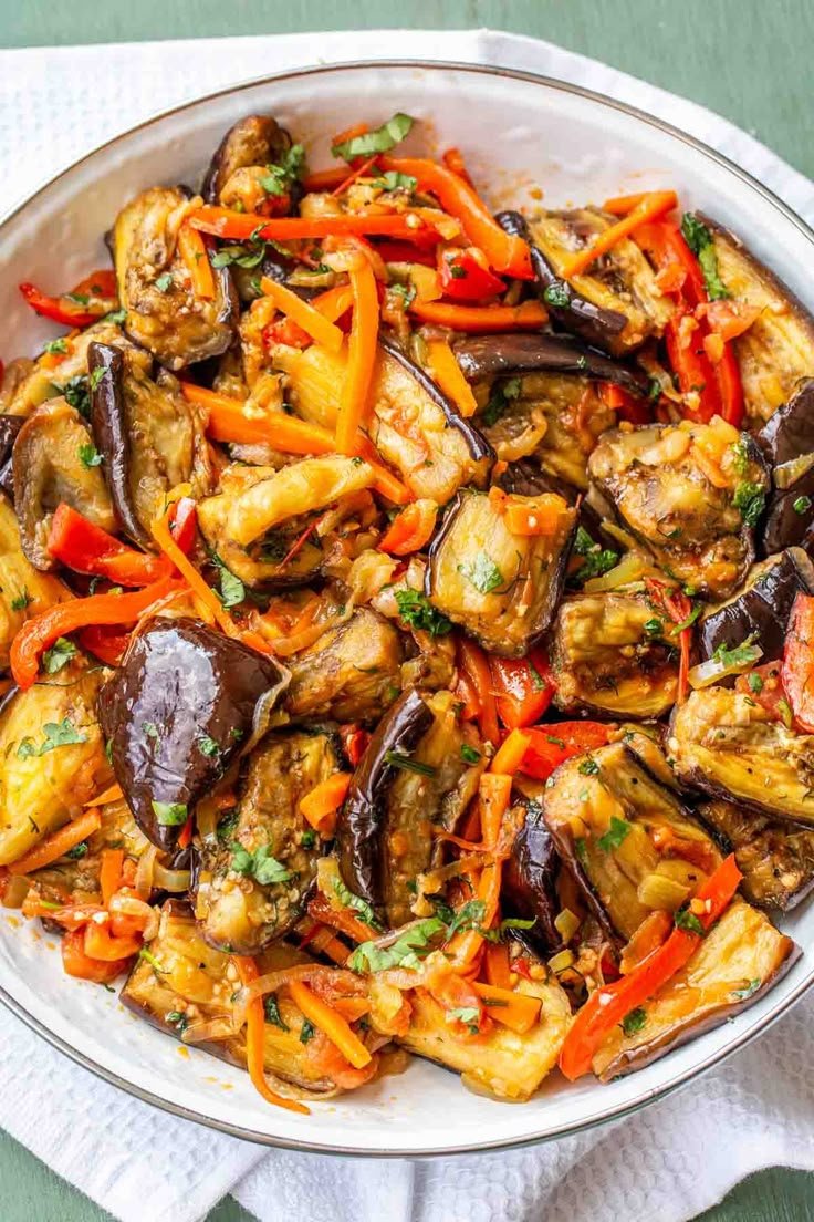 One-Pan Mediterranean Vegetable Eggplant is a simple, healthy, and flavorful dish made with roasted eggplant and colorful Mediterranean vegetables. Everything is cooked together on a single pan with olive oil, garlic, and herbs like oregano and thyme.