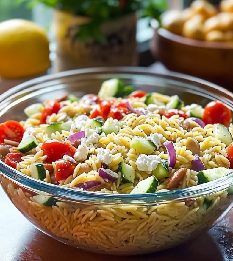 This Orzo and Feta Salad is a refreshing Mediterranean-inspired dish that’s light, flavorful, and perfect for any occasion. Tender orzo pasta is tossed with briny feta cheese, juicy tomatoes, crisp cucumbers, and fresh herbs, all coated in a zesty lemon vinaigrette. It’s a fantastic make-ahead meal for lunches, BBQs, picnics, or as a side dish for grilled meats.