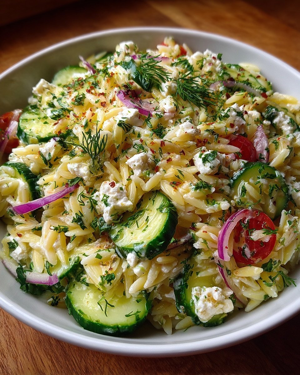 Orzo & Feta Salad with Dill & Cucumber is a refreshing and flavorful dish that’s perfect for warm days, light lunches, or as a healthy side. Tender orzo pasta is tossed with crisp cucumber, creamy feta cheese, and fragrant fresh dill, then finished with a bright lemon-olive oil dressing. This salad is quick to prepare, wholesome, and ideal for meal prep or gatherings.