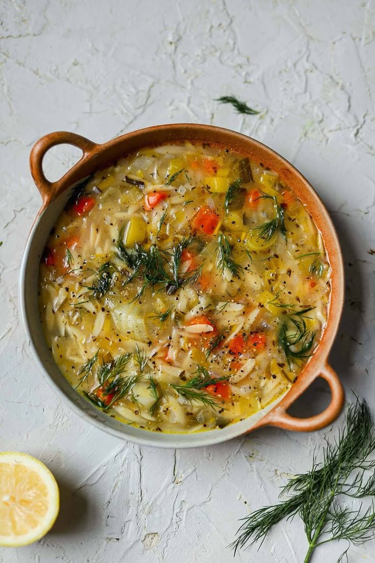 Mediterranean Orzo, Leek & Vegetable Dill Soup