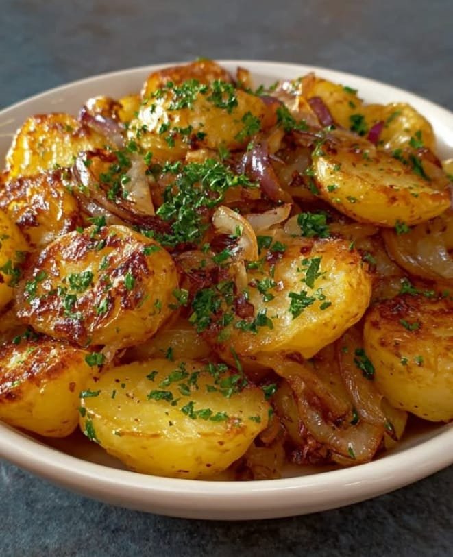 Oven-fried potatoes and onions are a healthier twist on the classic fried version. Baked until golden and crispy, this dish balances the sweetness of caramelized onions with the savory, earthy richness of well-seasoned potatoes. It’s perfect as a side for breakfast, brunch, or dinner!