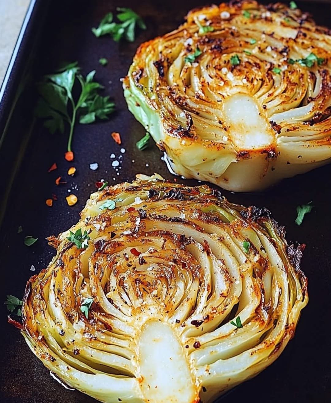 These oven-roasted garlic cabbage steaks are crispy on the edges, tender on the inside, and packed with flavor. Roasting cabbage brings out its natural sweetness while the garlic, olive oil, and seasonings create a savory, slightly caramelized dish. This easy, healthy side pairs well with meats, grains, or can even be enjoyed on its own.