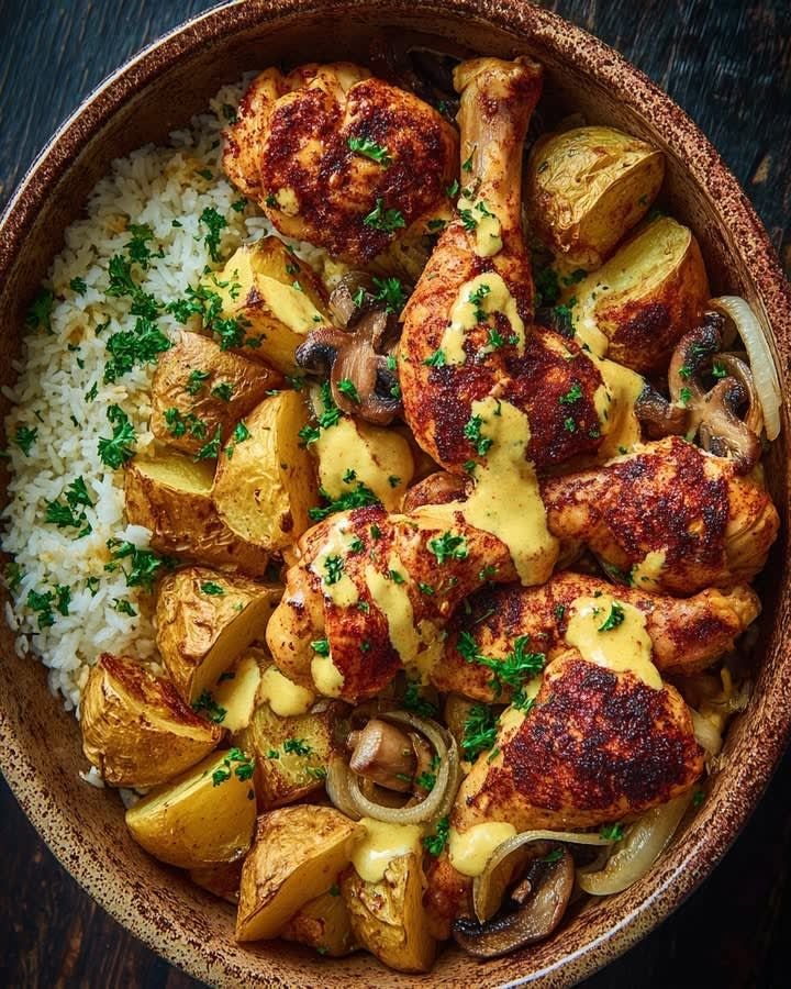 Juicy, tender chicken drumsticks roasted in a fragrant blend of garlic, herbs, olive oil, and lemon, paired with perfectly caramelized vegetables. This easy one-pan dish is wholesome, Mediterranean-friendly, and fills your house with an amazing aroma. Simply mix, bake, and enjoy!
