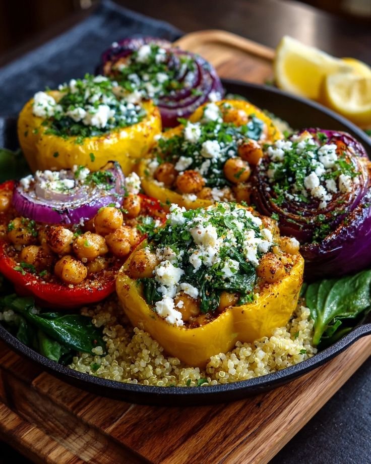 Mediterranean Chickpea & Spinach Stuffed Peppers Sweet bell peppers filled with a savory mix of chickpeas, spinach, tomatoes, and feta cheese, baked until tender. A colorful, healthy, and protein-packed Mediterranean dish that works perfectly for lunch or dinner. Cooking Time: Prep Time: 15 minutes Cook Time: 30 minutes Total Time: 45 minutes Ingredients: For the … Read more