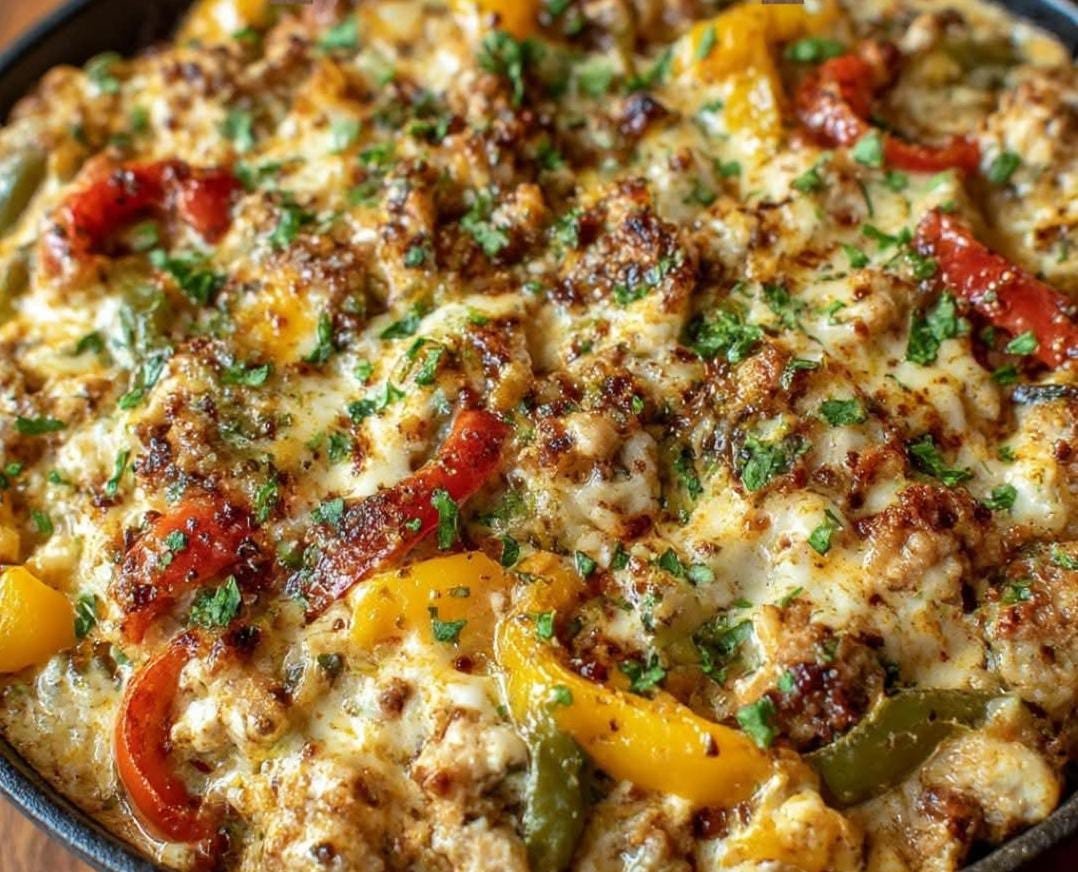 Mediterranean Cottage Cheese Turkey Pepper Skillet