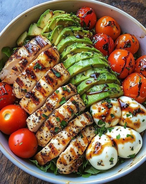 Grilled Chicken Avocado Caprese Bowl Inspired by the classic Italian Caprese salad, this bowl combines grilled herbed chicken with ripe avocado, fresh mozzarella, sweet cherry tomatoes, and a drizzle of balsamic reduction — all served over a bed of greens or grains for a light yet satisfying Mediterranean meal. Prep Time: 15 minutes Cook Time: … Read more