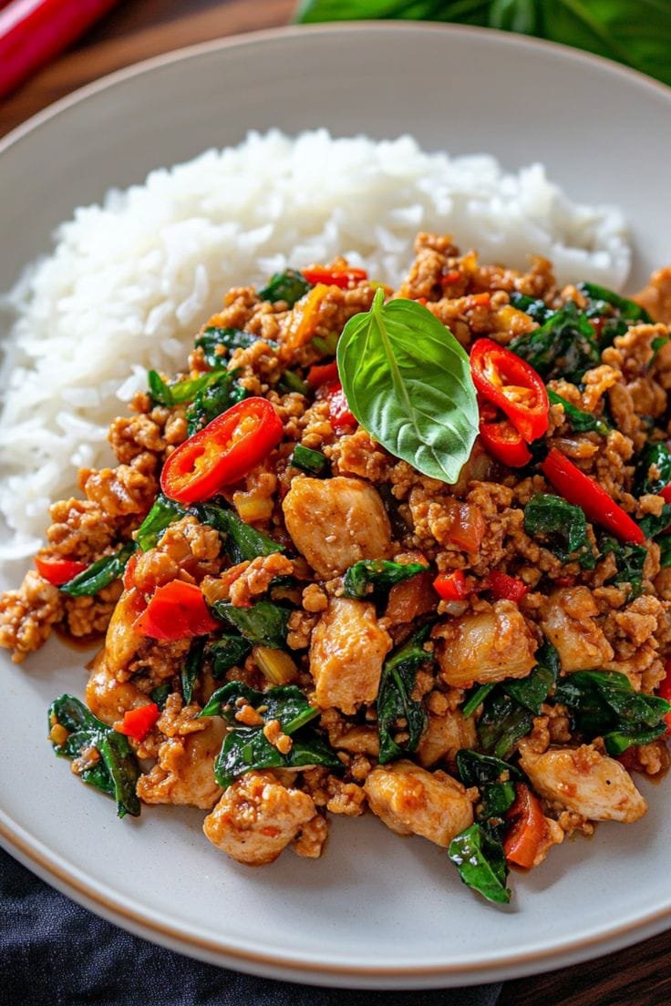 Spicy Thai Basil Chicken A classic Thai street food dish made with ground chicken stir-fried in a savory-spicy sauce with garlic, chilies, and fragrant Thai basil. It’s quick, full of umami flavor, and best served over jasmine rice with a fried egg on top. Time Prep Time: 10 minutes Cook Time: 15 minutes Total Time: … Read more