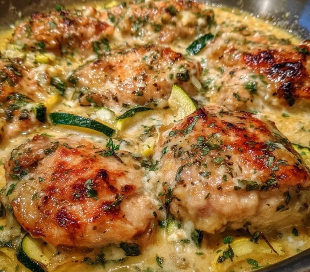 Mediterranean One-Pan Chicken, Zucchini & Cottage Cheese Skillet Bake