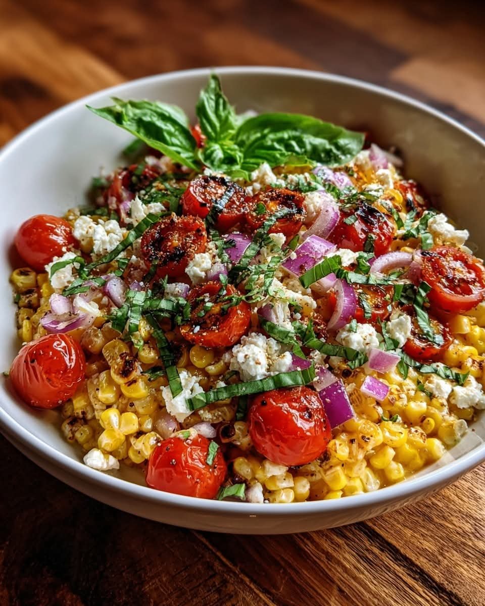 Charred Corn Salad with Feta and Lemon Basil Vinaigrette