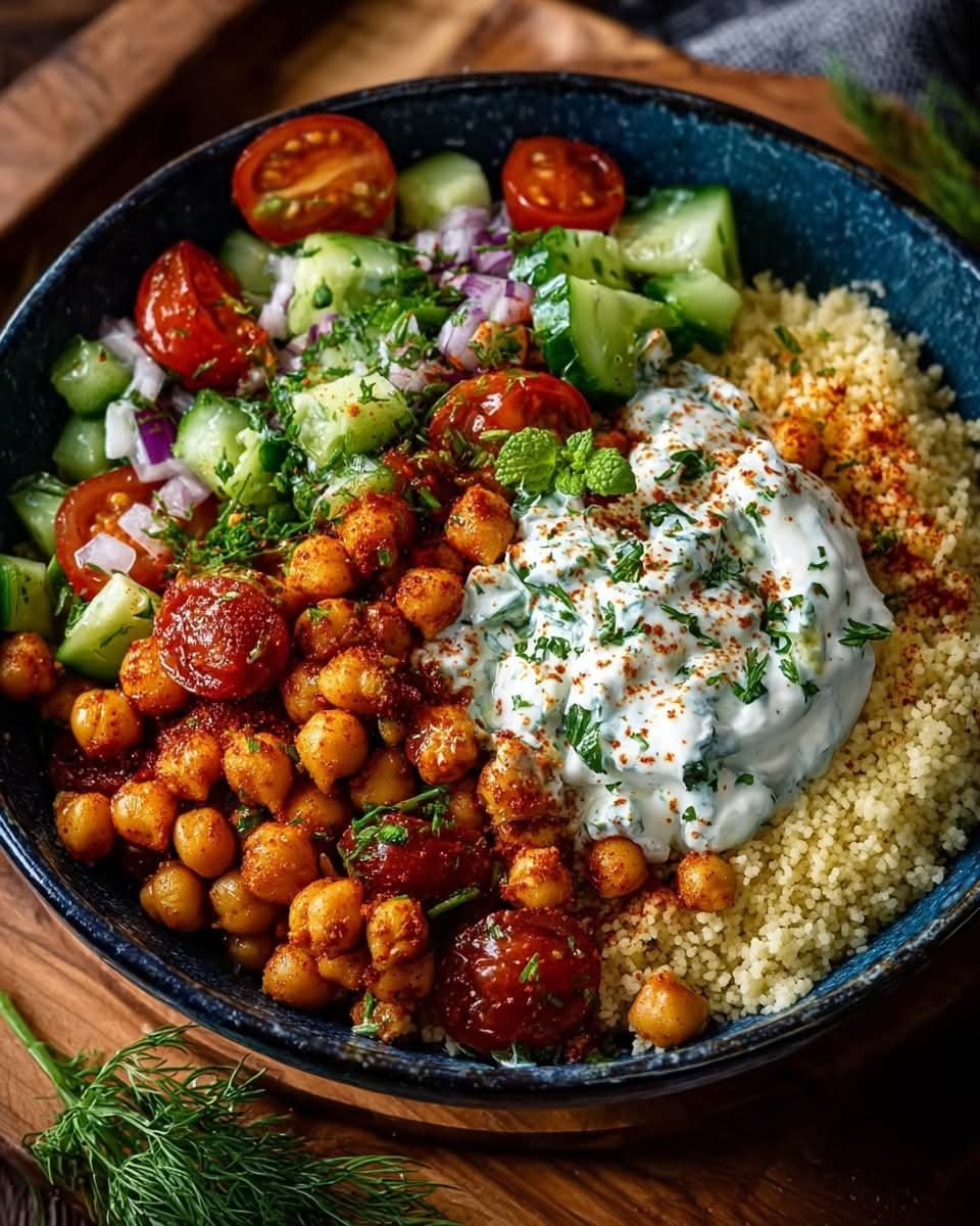 Couscous Salad with Roasted Chickpeas and Herbed Yogurt This vibrant salad combines fluffy couscous with crispy roasted chickpeas, crunchy vegetables, and a cooling herbed yogurt dressing. It’s full of textures and flavors: nutty couscous, savory chickpeas, and fresh herbs. Great for a healthy lunch, dinner, or meal prep. Time Prep time: 15 minutes Cook time: … Read more