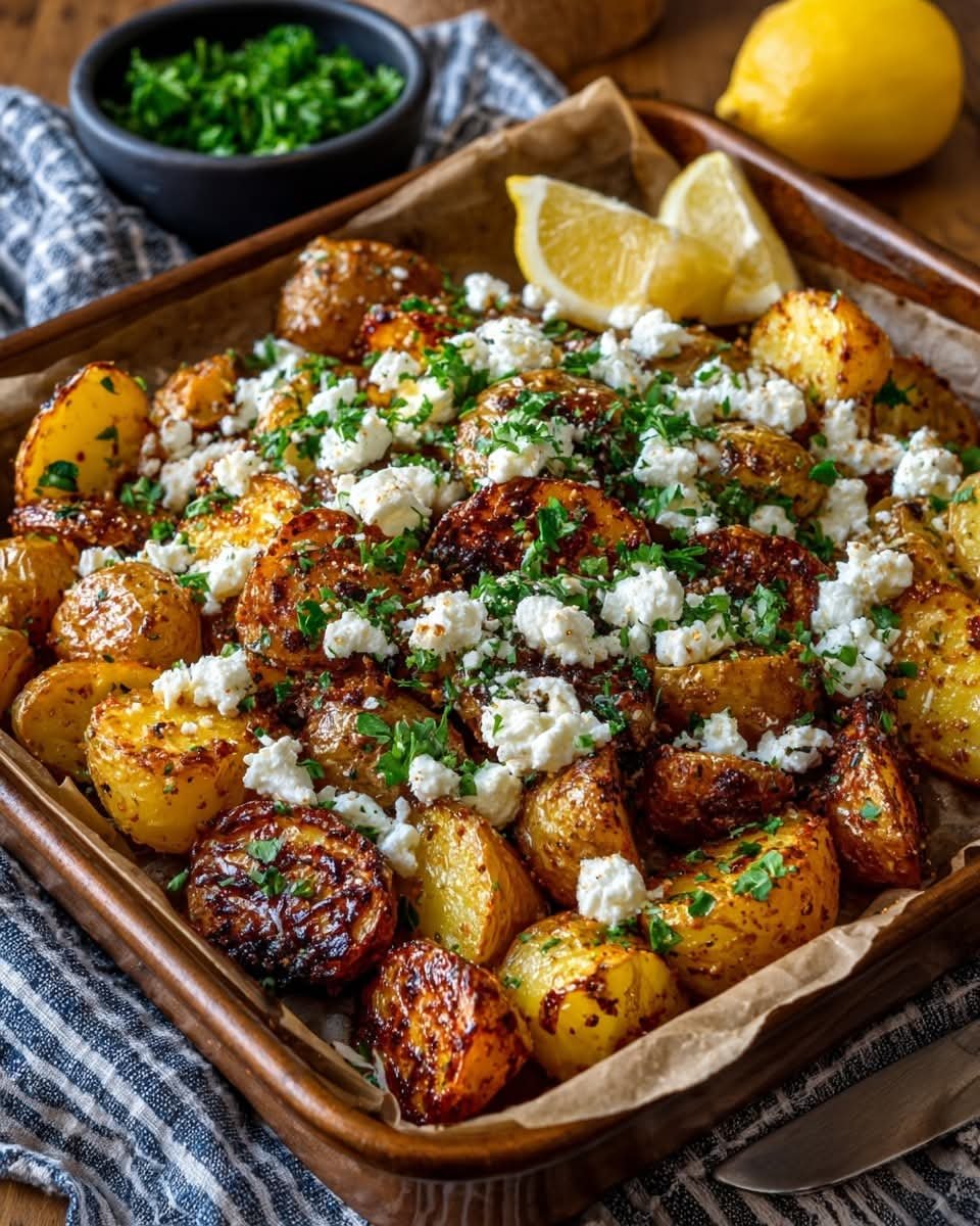 Greek Potatoes with Lemon and Feta Cheese