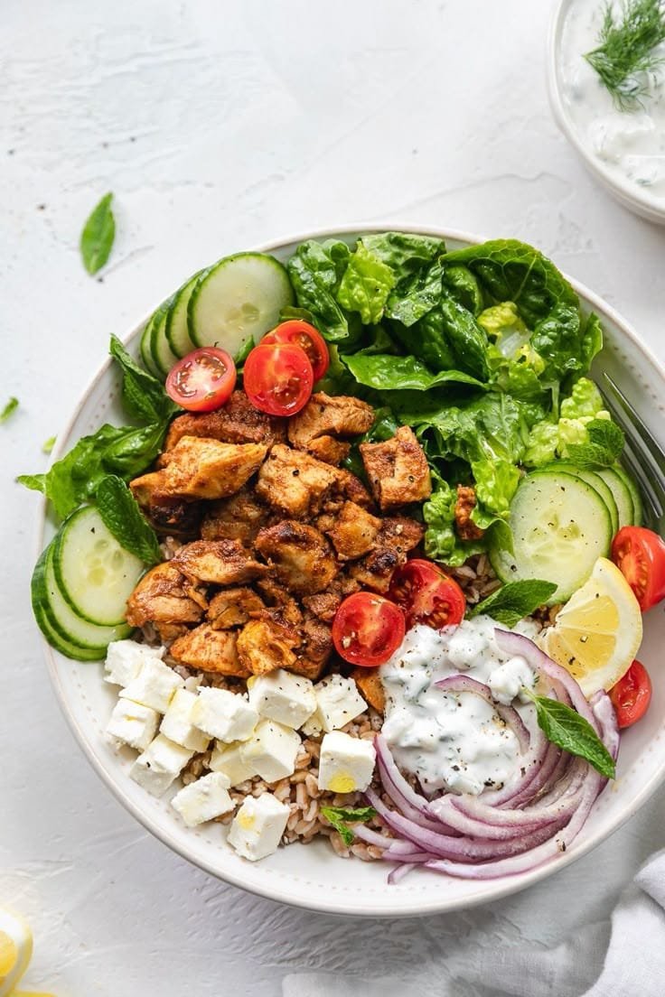 Chicken Shawarma Bowl with Quick Tzatziki Sauce