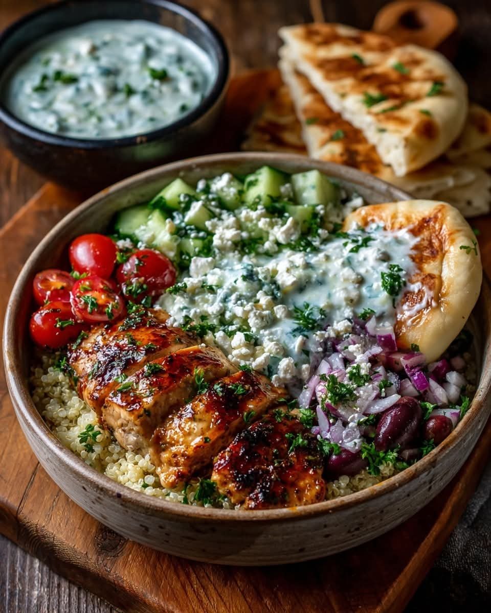 Grilled Greek Chicken Pita Bowl with Tzatziki Juicy marinated Greek-style chicken, grilled to perfection, served over warm pita pieces with fresh veggies, olives, and a dollop of creamy homemade tzatziki. A perfect balance of protein, grains, and refreshing Mediterranean flavors. Prep: 20 minutes (plus 30 minutes marinating) Cook: 15 minutes Total: 35–45 minutes Ingredients For … Read more