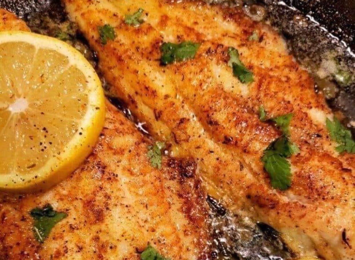 Place fish in the pan and cook until nicely browned, about 4 to 5 minutes on one side….. Add in the sliced lemon, a squeeze of lemon juice, and a teaspoonful of capers.