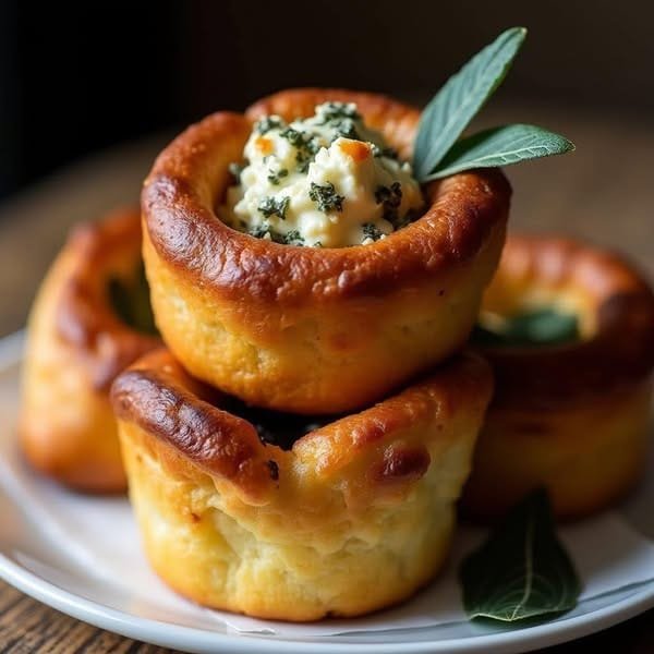 - Serve popovers warm, split open and slathered with the sage garlic butter.