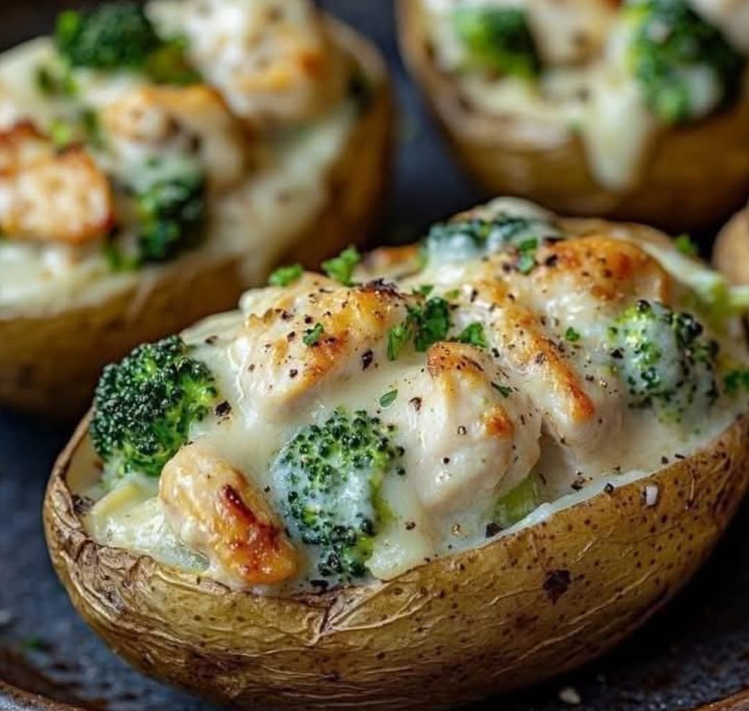 Tender chicken breasts are stuffed with creamy, cheesy mashed potatoes and baked until juicy and golden, then served with perfectly cooked broccoli for a comforting, flavorful dinner.