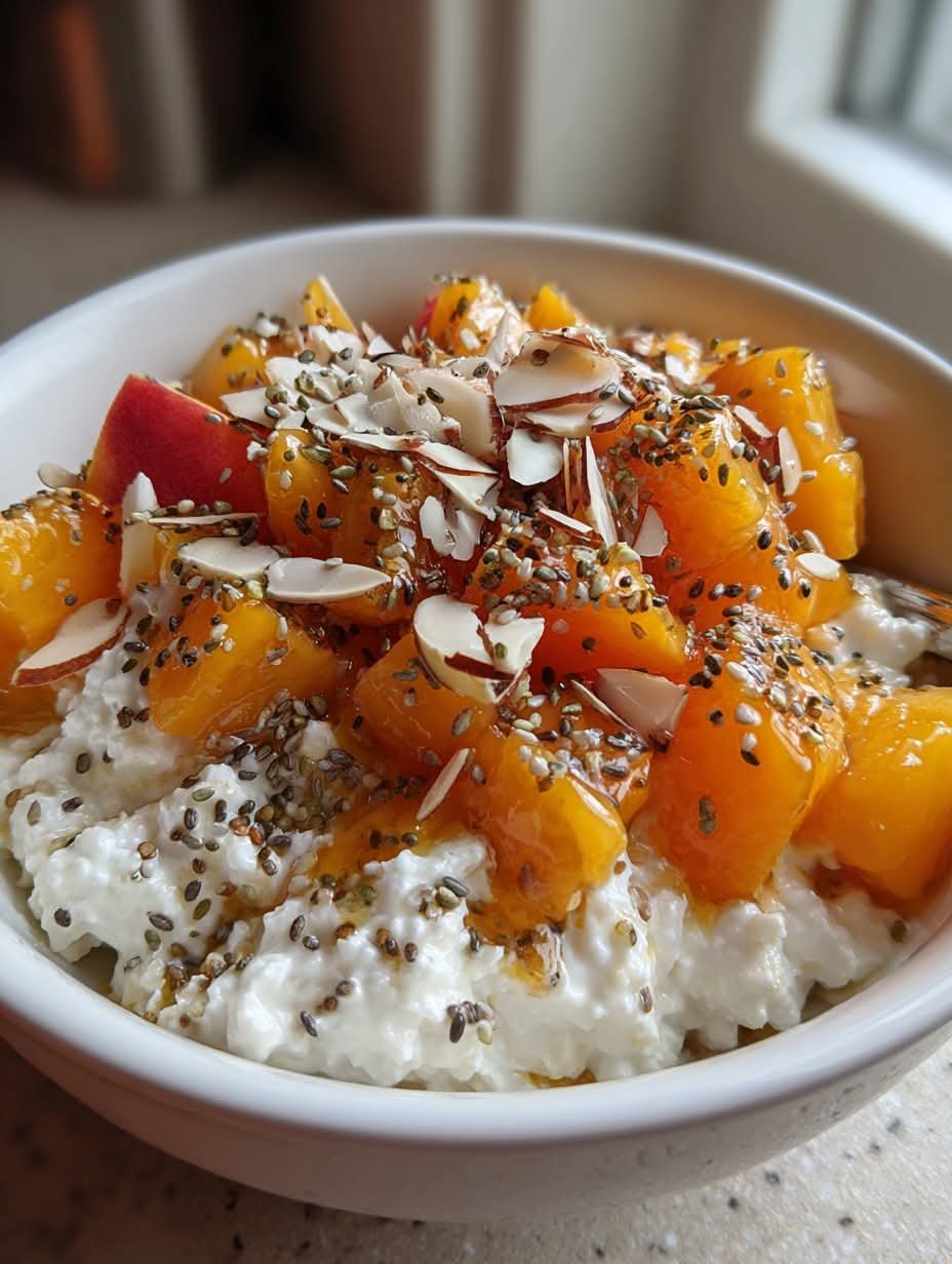 Start your day with a creamy, naturally sweet, and protein-packed breakfast bowl. This Peach Vanilla Cottage Cheese Breakfast Bowl combines the tangy creaminess of cottage cheese with juicy peaches, a hint of vanilla, and crunchy toppings like granola or nuts. It’s a light yet satisfying option for a quick breakfast or healthy snack, perfect for hot summer mornings or when you need a nutrient-rich start to your day.