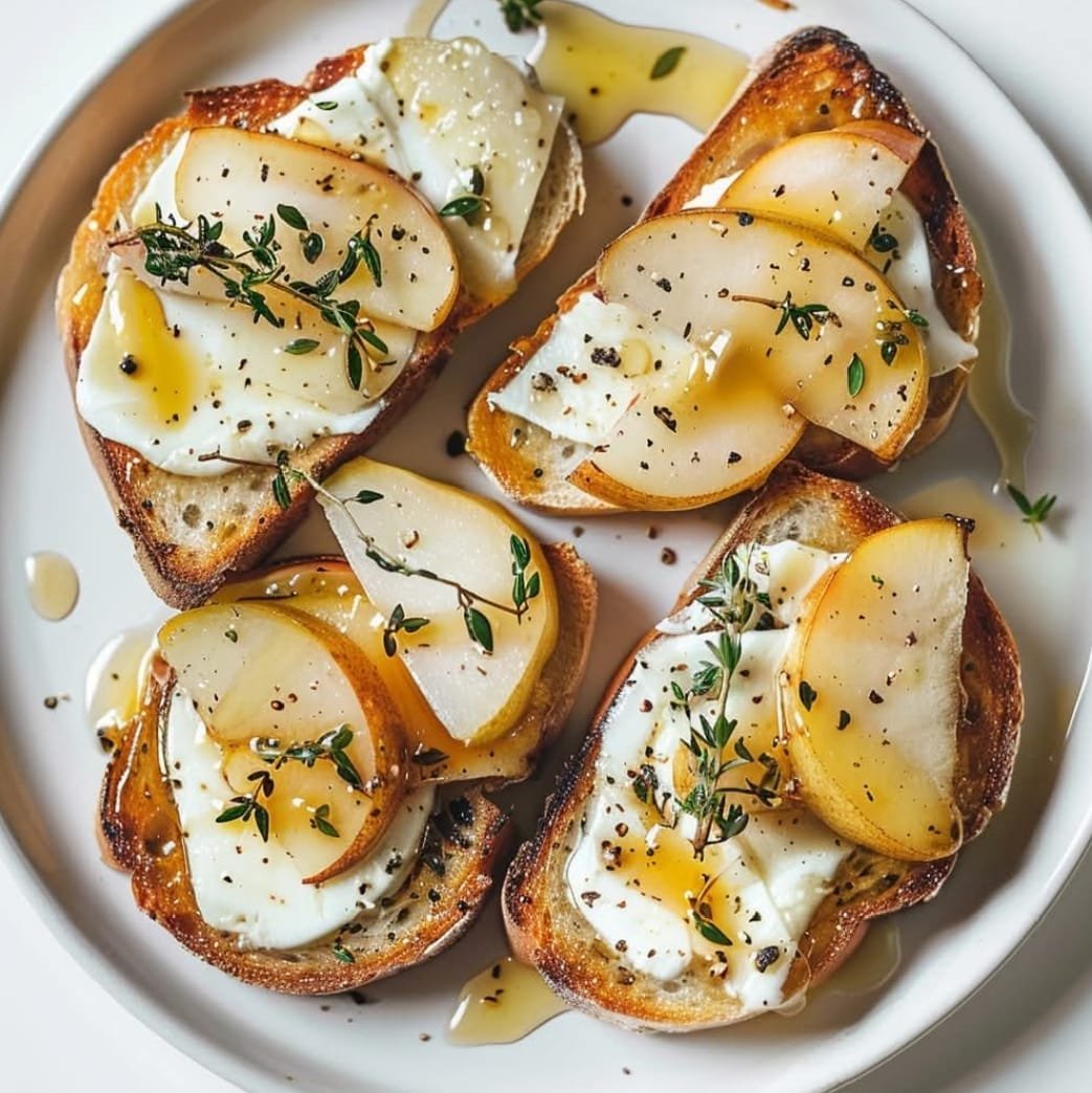 Pear & Burrata Crostini with Honey Thyme Drizzle