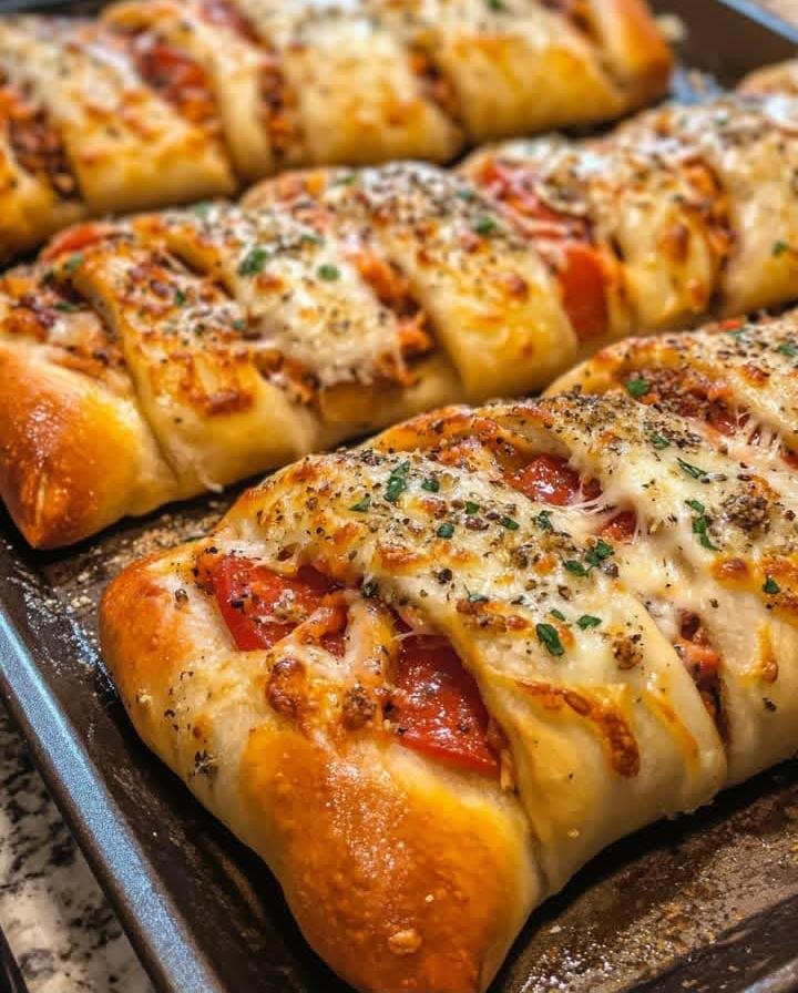 Stuffed version: Filled and rolled like a stromboli—crispy outside, cheesy inside