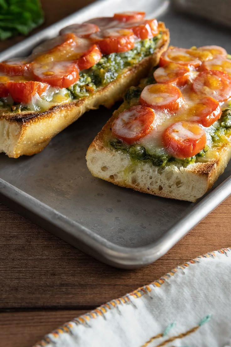 Bake at 200°C / 400°F for 8–10 minutes until cheese is melted and bread is golden.