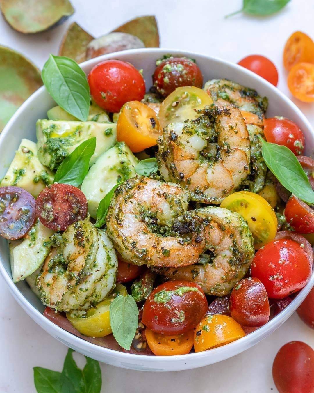 This Pesto Shrimp and Avocado Salad is a great choice for a balanced meal, providing healthy fats, lean protein, and a variety of vitamins and minerals.