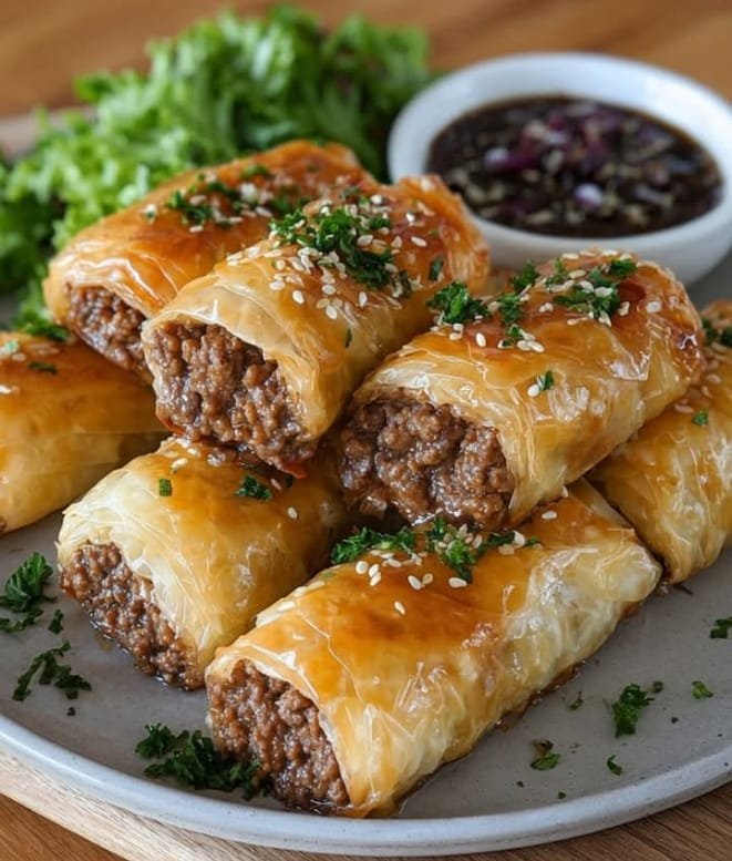 This savory Phyllo Roll with Ground Meat is a flaky, golden pastry packed with seasoned ground meat, herbs, and spices. Inspired by Turkish and Middle Eastern cuisine (often referred to as “börek”), it’s a perfect appetizer, snack, or main course with salad or yogurt dip on the side. It’s light yet satisfying, and the crisp layers of phyllo pastry offer a delightful crunch with every bite.
