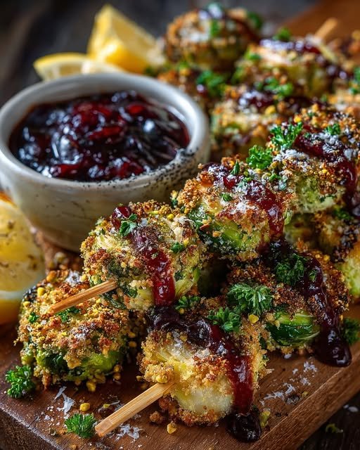 Pistachio-Crusted Brussels Sprout Skewers with Cranberry Drizzle bring together crunch, sweetness, and savory depth in a way that feels both comforting and fresh. They look impressive on the table but rely on simple techniques and familiar ingredients. Whether you serve them for a holiday gathering or as a colorful side to a weeknight meal, they offer a balanced, flavorful take on Brussels sprouts that even skeptics tend to enjoy. Once you try them, they are likely to earn a regular spot in your seasonal rotation.