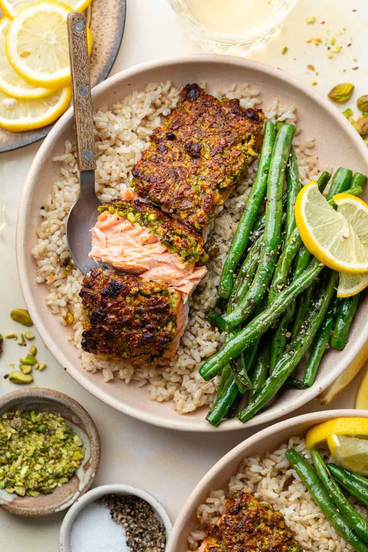This dish combines tender salmon fillets coated in a crunchy pistachio crust, paired with fluffy rice and crisp asparagus. It’s a balanced, flavorful meal that feels gourmet but is easy to make at home.